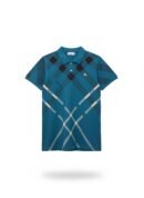 Teal blue men’s luxury sized large plaid check polo shirt